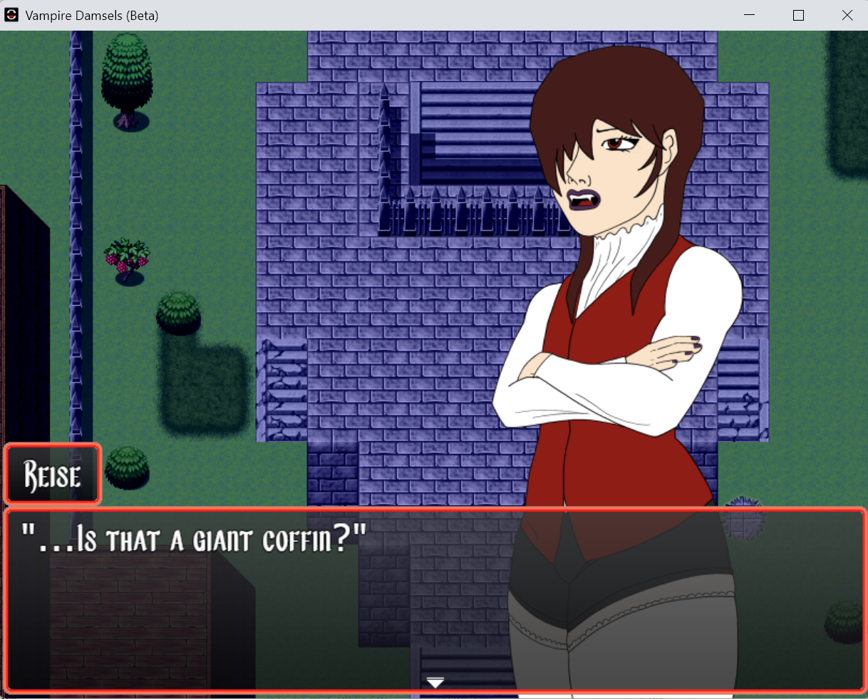 Hello everyone! This is NOT a good game or a finished one! This is Vampire Damsels, the precursor to the now in development Escape From Visgrant Manor, or EFVM for short. I began Vampire Damsels immediately after purchasing RPGmaker, learning as I went. I became very unsatisfied and eventually abandoned it for another project that I used to learn. Both were discarded and I hit the board again to create what I had dreamt of, which is now EFVM. Vampire Damsels abandoned and makes light of a lot of fantasy tropes and characters that I wanted to do more justice. The manor itself is shallow and has no character, and all of the dialogue and plot points were made up as I went. Which means...I can PROMISE you the now in development EFVM is at least 10X better than this. This is released for fun! Enjoy, it's free. It's Reise and Caseys origin, but do know that this is NOT my artistic goal nor idea. It's all very primitive and as I work on EFVM I fall more in love with the characters, lore, and world. This was simply a stepping stone to that.